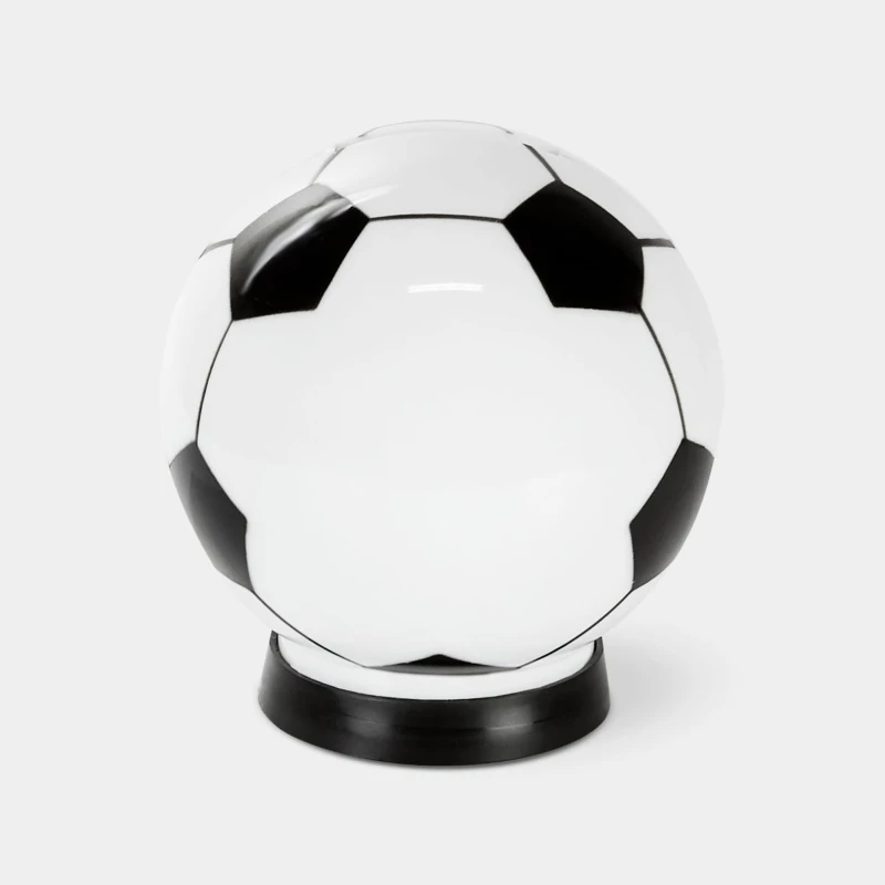 Alcancía con base en forma de balón de fútbol. 7.2 x 8.2 cm.