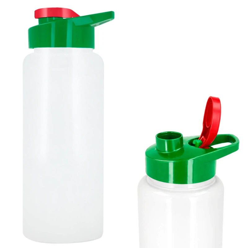 Cilindro de plástico sólido tricolor con tapa enroscable, asa y boquilla que cierra a presión. 23.3 x 8.5 cm. 1 Lt.