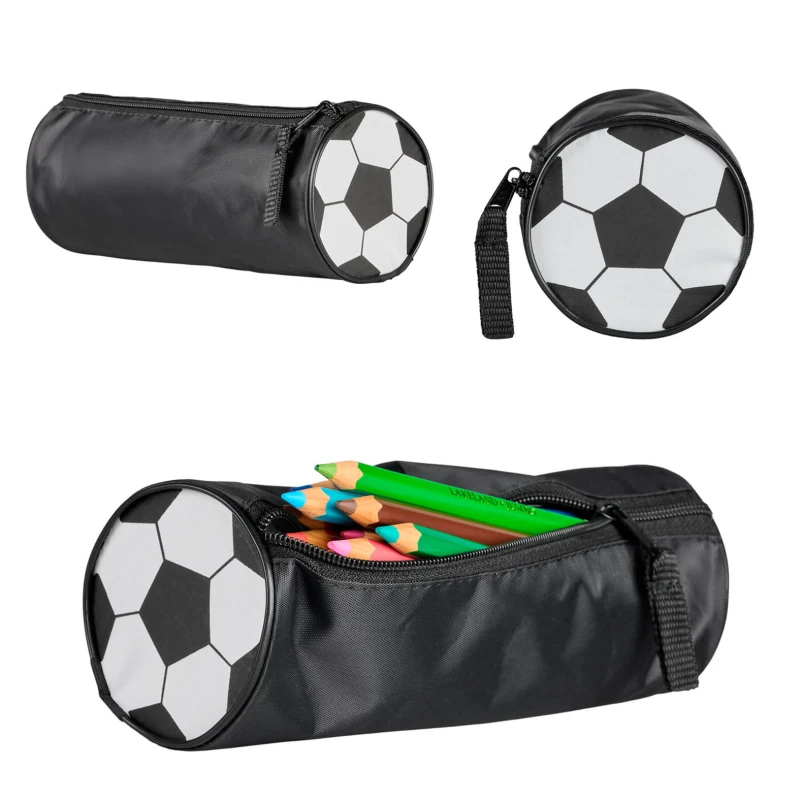 Lapicera de poliéster con print de balón en los laterales y cierre. 9 x 23.2 cm.