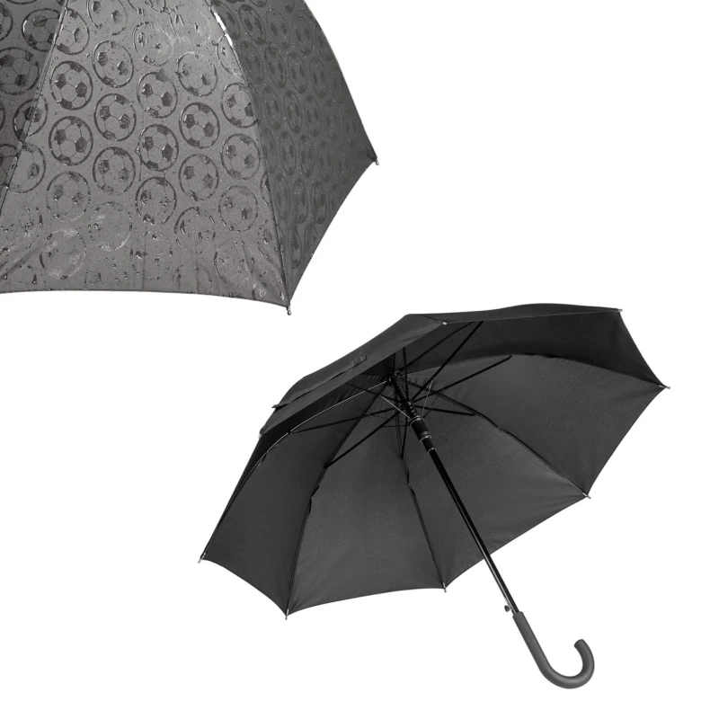 Paraguas mágico de apertura automática, 8 gajos, mango de plástico, broche de velcro y figuras de balón que se intensifican al contacto con el agua. 75.5 x 116.5 cm.